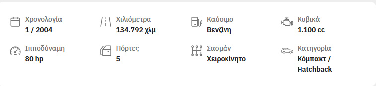 ΟΧΗΜΑΤΑ ΜΕΤΑΧΕΙΡΙΣΜΕΝΑ Kia Sportage 2019 DIESEL120hp – 1.6c.c.14.900 € ΛΕΠΤΟΜΕΡΕΙΕΣ Hyundai Atos 2004 80 HP – 1.1 c.c. 3.200 € ΛΕΠΤΟΜΕΡΕΙΕΣ Hyundai Inster 202549kWh 115ps PREMIUM24.600 € ΛΕΠΤΟΜΕΡΕΙΕΣ Honda Civic 20051.6 es4.300 € ΛΕΠΤΟΜΕΡΕΙΕΣ